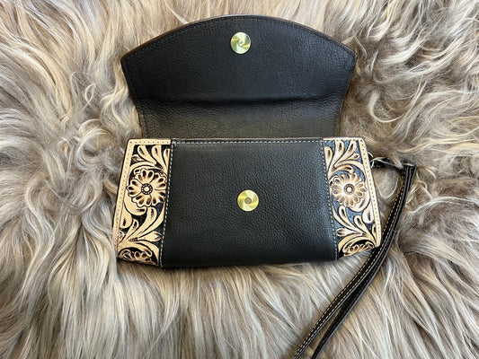 Tooled Black Leather Wallet